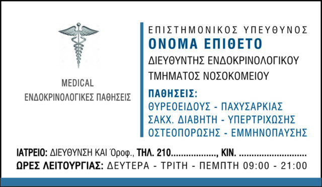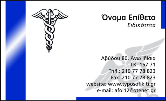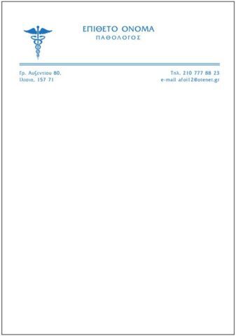 Η πολυετή συνεργασία μας με τον Ιατρικό Κλάδο και κυριώς τα Δημόσια Νοσοκομεία, μας έχουν δείξει τις ανάγκες που υπάρχουν, για να μπορούμε να σας εξυπηρετούμε άμεσα σε συνταγολόγια και κάρτες με ξεχωριστό λογότυπο – δημιουργικό μακέτας εντελώς δωρεάν, για κάθε περίπτωση. Επίσης οτιδήποτε άλλο μπορεί να χρειαστείτε όπως αποδείξεις, τιμολόγια κτλ. Ειδική Προσφορά για Γιατρούς κάθε ειδικότητας. Εμπιστευτείτε μας !!!