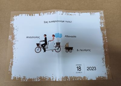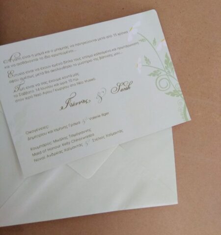 σε σύντομο χρονικό διάστημα με την επιλογή της ποιότητας του χαρτιού και του φακέλου από εσάς, όπως και το σχεδιασμό της πρόσκλησης. Δείξτε μας το σχέδιο που σας αρέσει και θα σας το δημιουργήσουμε Γρήγορα και Οικονομικά χωρίς καμία επιβάρυνση στη μακέτα. Φτιάξτε το ξεχωριστό προσκλητήριο για τη ξεχωριστή σας ημέρα….